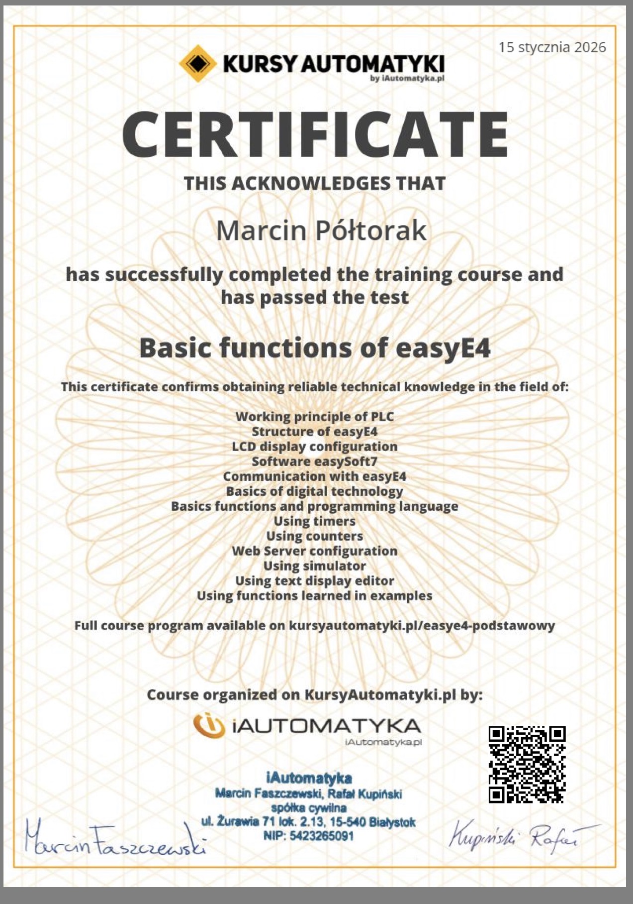 Posiadamy certyfikaty i regularnie uczestniczymy w szkoleniach branżowych, co gwarantuje bezpieczne i skuteczne wykonanie usług.